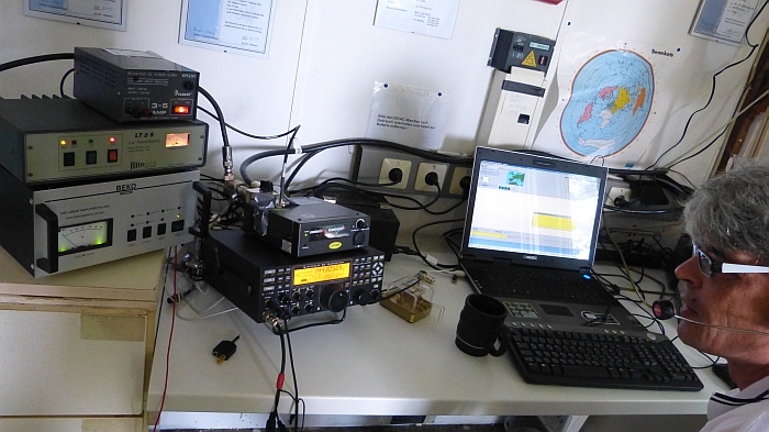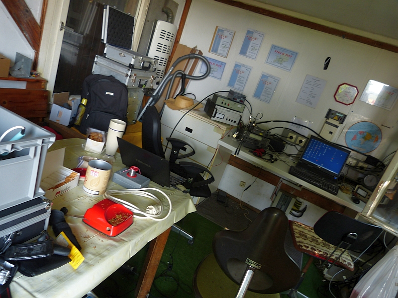 Nachdem der Antennenaufbau und die ersten kurzen Tests am Freitagabend erfolgreich verliefen, trafen wir uns am Samstag gegen 11:00 um die letzten Vorbereitungen zu treffen. Genügend Zeit um alles in Position zu bringen. Glücklicherweise waren fast alle Steuerkabel da, nur eines musste noch irgendwo angelötet werden. Am Ende schaltete auch alles so, wie es geplant hätte sein können.