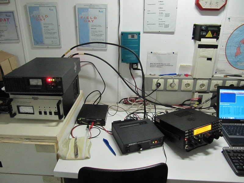 Nochmals ca. eine Stunde, und die Anlage war sendebereit. Wie schon befürchtet, zeigten sich die Bedingungen von ihrer schlechteren Seite. Aber immerhin hatte die Anlage den Winter überstanden. Also Klappe zu und ab nach Hause.