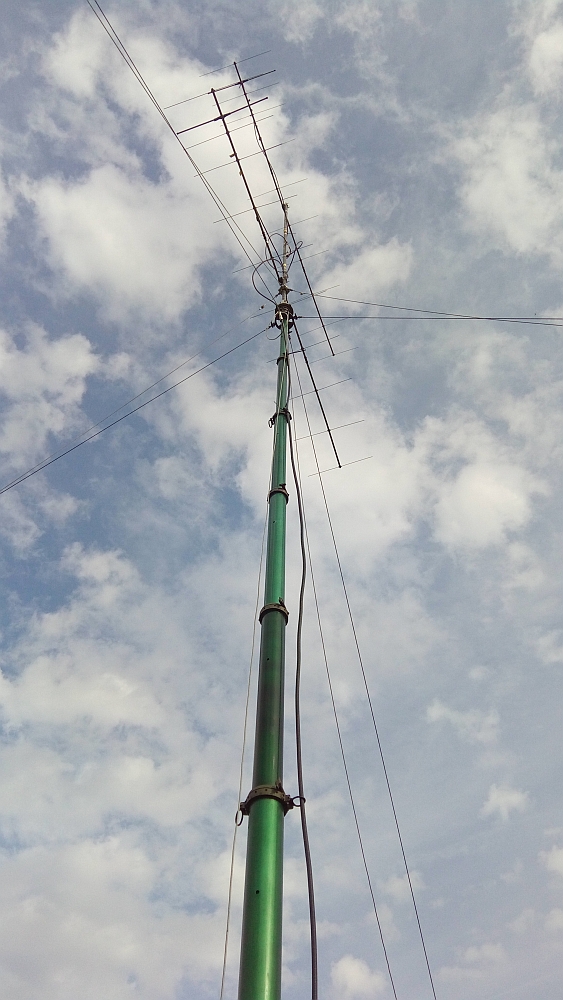 langen Alusteckmast mit den zwei gestockten Antennen.