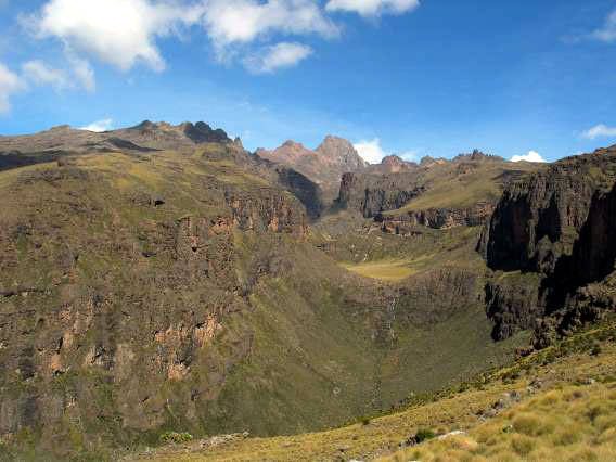 Der Weg überwindet zunächst die oben hinter dem Zelt sichtbare Stufe.